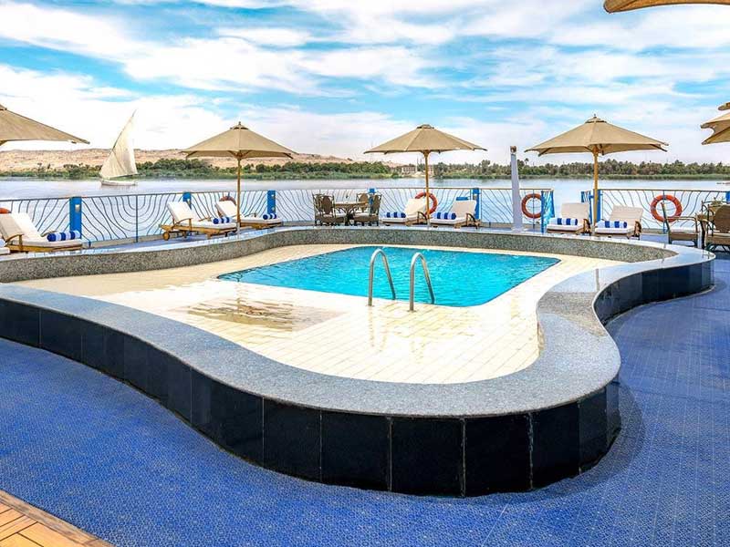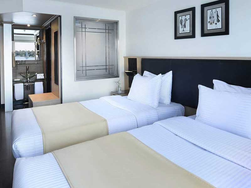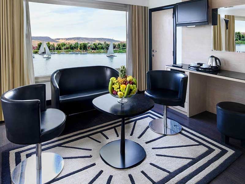 Elevate your cruise experience with our suites at deck, providing unrivaled panoramic views, exclusive amenities, and a luxurious haven amidst the scenic beauty of the Nile.